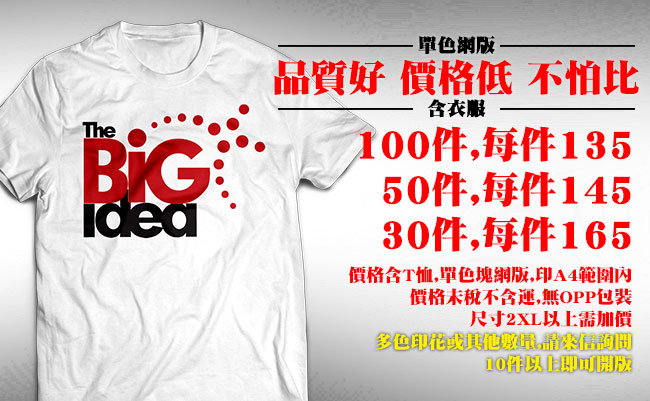 我們是自營工廠,以最實在的價格,替您印製好衣服!