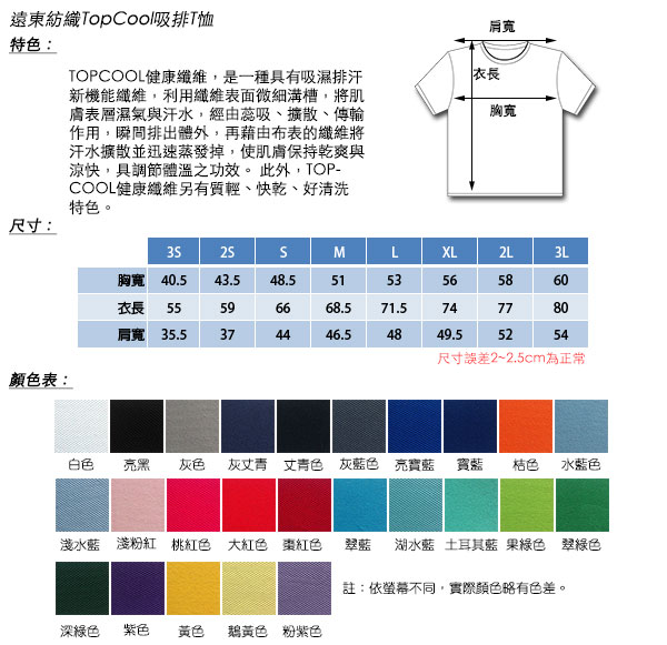 遠東紡織TopCool圓領吸排T恤-共25色